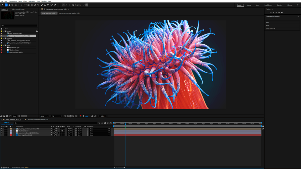 ✅ AfterFX compositing setup for final look development.